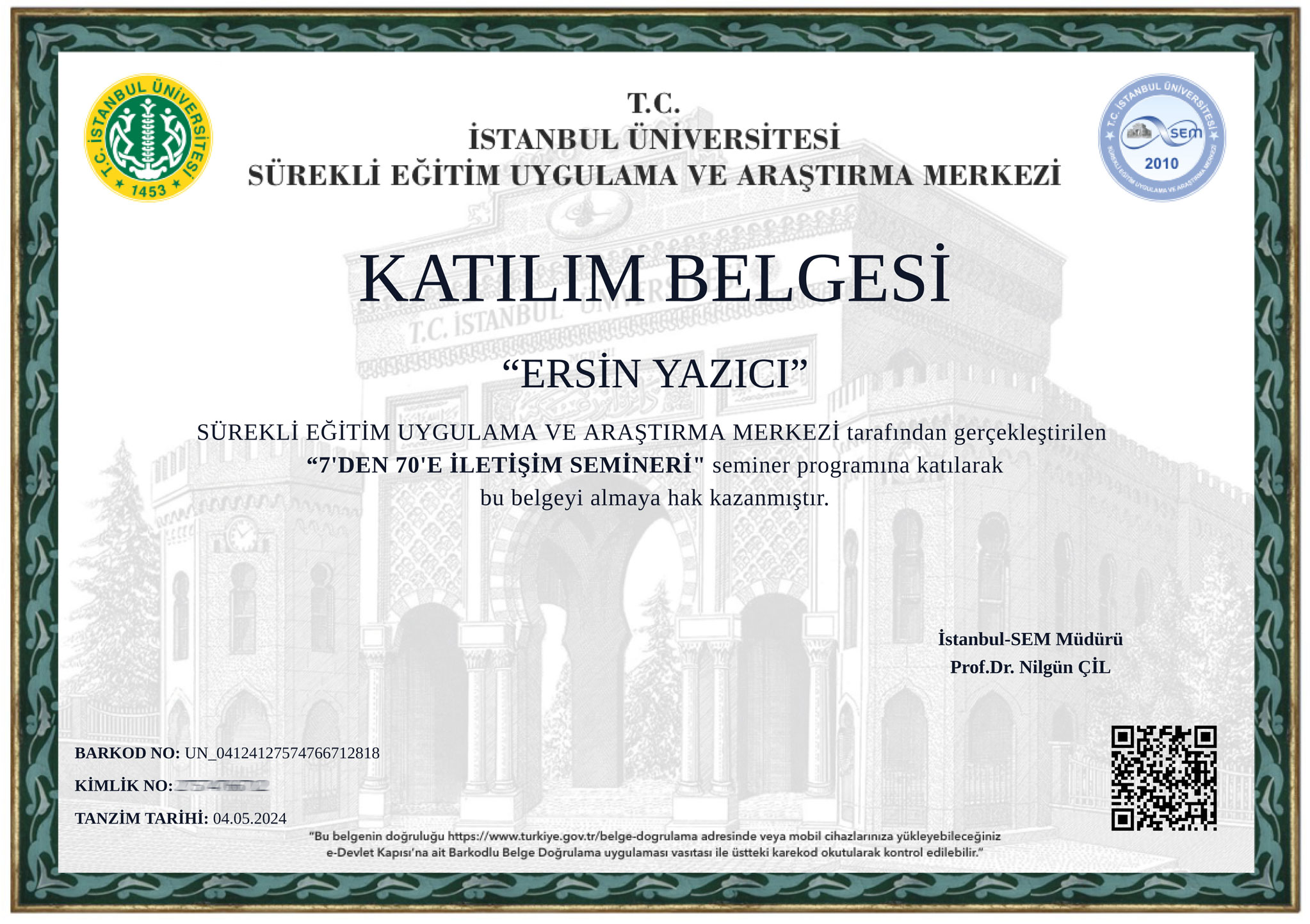 SEMİNERLER (İstanbul Üniversitesi)